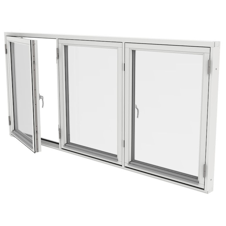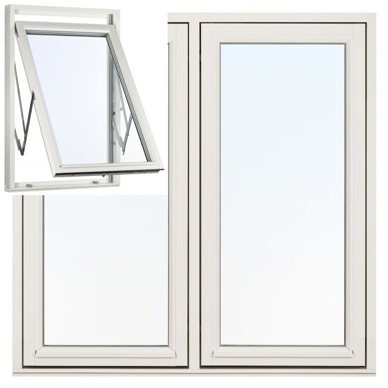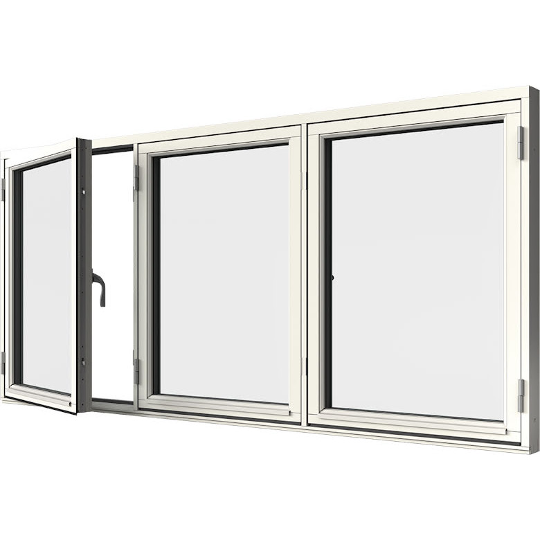 Sidohängt Fönster Elitfönster Retro Treluft 3-Glas Vitlackerad Alu