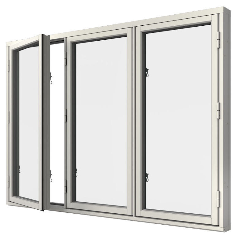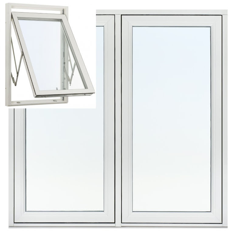 Sidohängt Fönster Outline Treluft 3-Glas Vitmålat Trä
