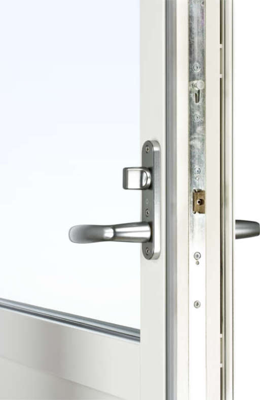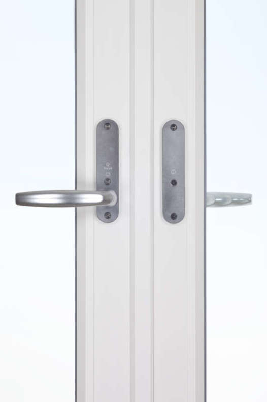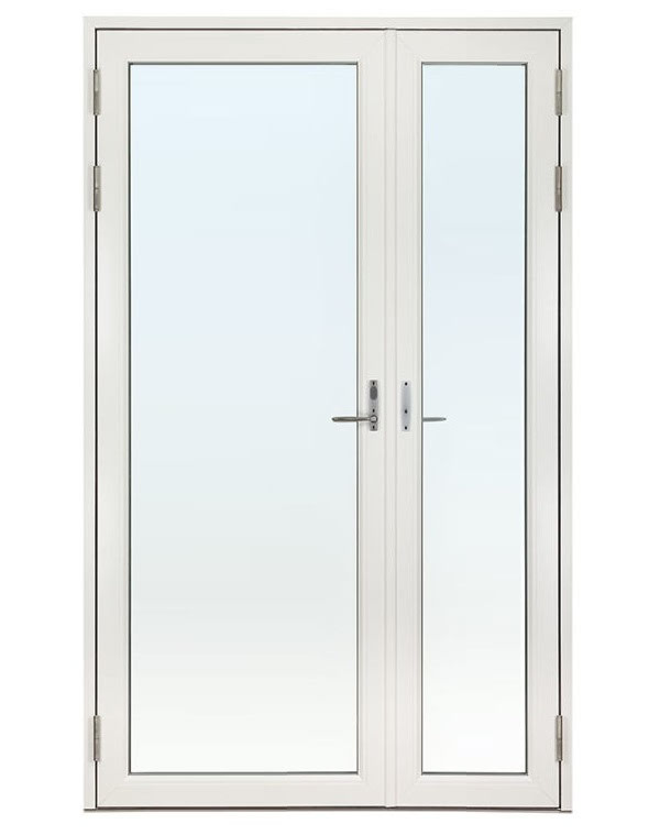 Helglasad Parfönsterdörr Asymmetrisk Svenska Fönster Rund Profil 3-Glas Vitlackerad Aluminium