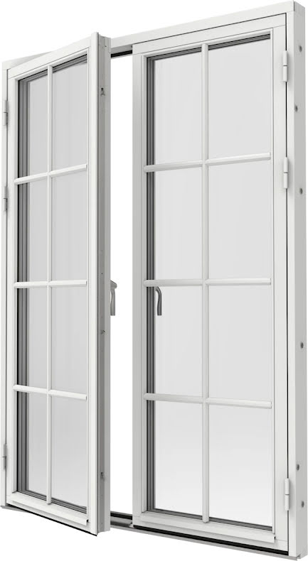 Helglasad Parfönsterdörr Elitfönster Original Trä 100 3-glas Vitmålat Trä
