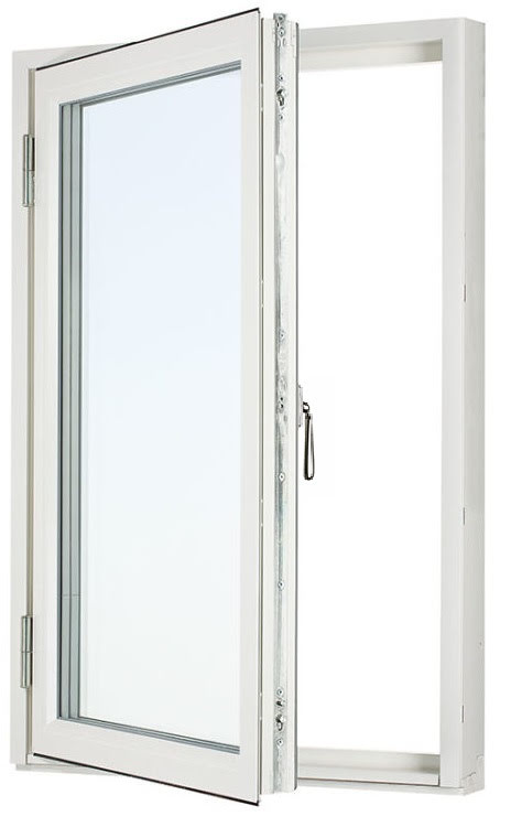 SIDOHÄNGT FÖNSTER SVENSKA FÖNSTER RUND PROFIL 3-GLAS VITLACKERAD ALUMINIUM
