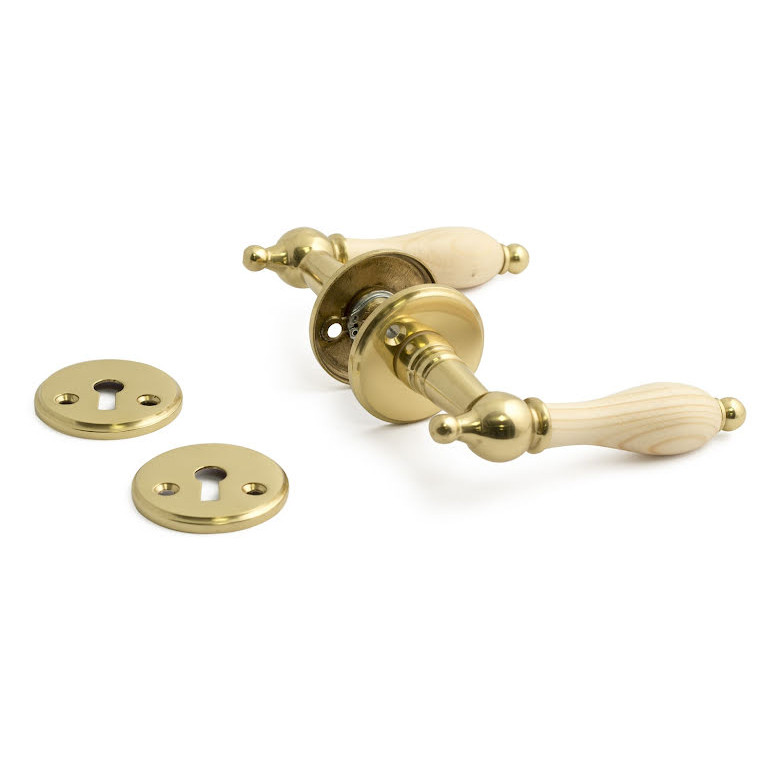 Dörrhandtag HABO A9686 inkl. nyckelskylt Furu/Polerad Mässing